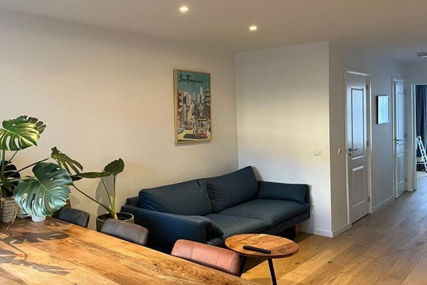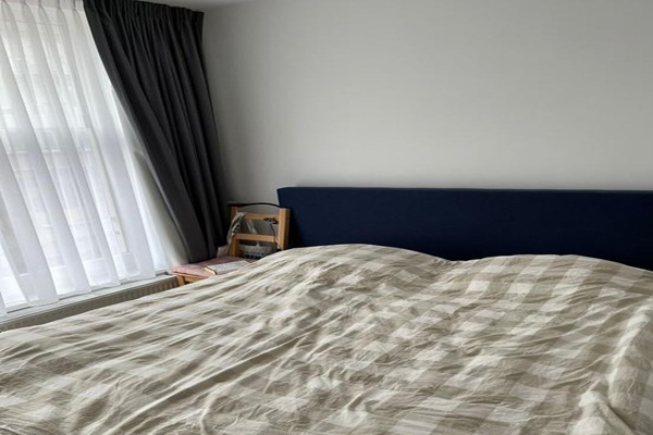 DE INDELING Via de gemeenschappelijke hal van het appartementencomplex is middels een trap de eerste verdieping te bereiken. Vanuit de woonkamer met halfopen keuken kunt u het balkon betreden. Vanuit de woonkamer heeft u toegang tot de badkamer, separaat toilet en slaapkamer. De keuken is voorzien van een inductieplaat, een koelkast, vriezer, een vaatwasser en een magnetron/oven. Er is een wasmachine en droger aanwezig in het appartement.