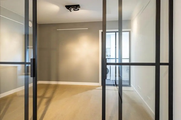 Indeling Entree, hal met videofoon, aparte luxe afgewerkte toiletruimte met zwevend toilet en fonteintje, berging met was-droogcombinatie, inpandige slaapkamer met een moderne stalen zwarte glazen pui en voldoende ruimte voor een dubbel bed en een kledingkast. Vanuit de slaapkamer is er toegang tot de moderne badkamer met inloopdouche en wastafelmeubel. De ruime woonkamer met open keuken is gelegen aan de voorzijde (tevens straatzijde). De open keuken is v.v. inbouwapparatuur: combi-oven, inductiekookplaat, afzuigkap, spoelbak, koel-vriescombinatie en een vaatwasser. Geschikt voor een werkend stel of iemand alleen;