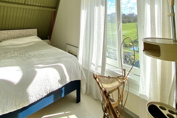 De woning is ideaal voor een stel, eventueel met een of twee kinderen; dit is een gezellig internationale buurt met veel andere kinderen. Indeling Dijkniveau – Woonkamer Lichte living met panoramisch uitzicht over het water en de skyline van Amsterdam/KNSM-eiland. Twee thuiskantoor/werkplekken. Souterrain – Keuken & eetruimte Nieuwe, moderne keuken met toegang tot de tuin en vrij uitzicht over de polder. Badkamer met ligbad, douche en toilet. Eerste verdieping – 3 slaapkamers & badkamer Drie slaapkamers. Separaat toilet en wastafel. -Niet geschikt voor woningdelers -Alleen geschikt voor een werkend stel zonder (kein) kind; geen garantstellers