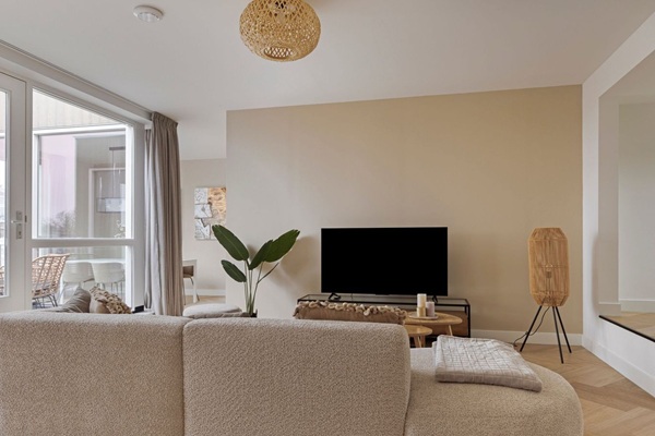 Indeling: Bij binnenkomst betreedt u de gezamenlijke hal op de begane grond. Vanuit hier heeft u toegang tot de trapopgang naar de eerste verdieping, waar het appartement zich aan de rechterzijde van het complex bevindt. Op de eerste verdieping komt u via de entree in de hal van het appartement. Vanuit de hal zijn twee van de drie slaapkamers bereikbaar. Slaapkamer 1 is ingericht met twee eenpersoonsbedden, en slaapkamer 2 beschikt over een comfortabel stapelbed. Tevens heeft u vanuit de hal toegang tot het toilet, een praktische wasruimte en de moderne badkamer, voorzien van een inloopdouche en een stijlvol wastafelmeubel. De trap in de hal leidt naar de vide op de tweede verdieping, waar zich de ruime en lichte derde slaapkamer bevindt, ingericht met een tweepersoonsbed. Vanaf de vide gaat er nog een trap naar het woongedeelte van het appartement. De woonkamer is ruim en licht en beschikt over een open keuken, een gezellige eethoek en een extra (studeer)kamer. De keuken is volledig uitgerust met moderne apparatuur, waaronder een kookplaat, afzuigkap, vaatwasser, oven, koelkast en vriezer – ideaal om uitgebreid te koken. Aansluitend aan de keuken en woonkamer vindt u het zonnige dakterras, een perfecte plek om te ontspannen en te genieten van het buitenleven.