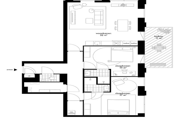 Deze woning betreft een FRIENDSWONING, dus je huurt het appartement samen met familie, een collega of friend. Samen deel je de royale living met open keuken en het ruime balkon. En het toilet en de berging met de aansluitingen voor de wasmachine en wasdroger. Daarnaast heb je een eigen royale slaapkamer met ensuite badkamer die is ingedeeld met een wastafel en douche.