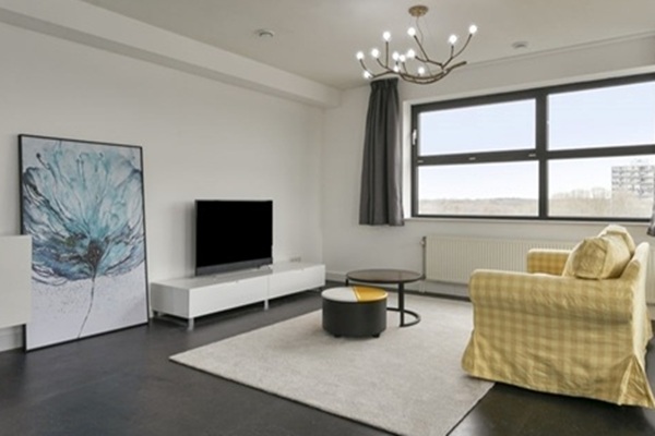 INDELING Entree, toegang tot de woonkamer, 2 slaapkamers, badkamer, toilet en aparte berging. Het gehele appartement is netjes afgewerkt met vloer en wanden en is volledig gemoderniseerd, inclusief de open keuken, badkamer en toilet. De woonkamer is zeer ruim en dankzij de vele ramen en de goede plafondhoogte is er veel licht en een prachtig uitzicht. Er is ook een aparte ruimte (loggia) in de woonkamer die gebruikt kan worden als speel-/studeerkamer of thuiskantoor. In de inpandige berging bevinden zich de aansluitingen voor de wasmachine, de cv-ketel en de warmte terugwinningsinstallatie. Daarnaast is er voldoende ruimte voor het opbergen van huishoudelijke apparaten en andere spullen. De badkamer is luxe afgewerkt met een ruime inloopdouche met regendouchekop, een brede wastafel en meubilair inclusief spiegel. Met de matzwarte details en wandafwerking is het geheel compleet. (in overleg mogelijk een paar dagen eerder)