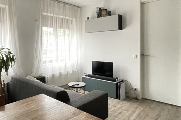Indeling: Bij binnenkomst bevind je je in de hal. Deze geeft toegang tot het toilet en een berghok. Vanuit de hal kom je in de woonkamer met open keuken. De keuken is voorzien van een vaatwasser, koelkast met vriesvak, combi magnetron en voldoende opbergmogelijkheden. Vanuit de woonkamer zijn de twee (slaap)kamers en de afgewerkte badkamer te bereiken. De badkamer beschikt over een wastafel met spiegel, douchecabine en een aansluiting voor de wasmachine. Verder is er een ruimte die gebruikt kan worden als werkplek. Dit is geen separate kamer, maar deze ruimte wordt deels afgeschermd van de woonkamer door een muur. De woning beschikt over een externe berging die zich bevindt in de beneden gelegen parkeergarage.