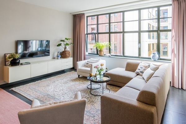 Indeling Binnenkomst via de prachtige centraal afgesloten entree voorzien van een trap en twee liften. Eigen entree op de eerste etage. Binnenkomst in de ruime hal voorzien van de meterkast, garderoberuimte, bergkast voorzien van wasmachine en droger en het toilet. De zeer ruime woonkamer is voorzien van grote raampartijen en een open keuken. De keuken is voorzien van een kookeiland voorzien van kookplaat, afzuigkap, koelkast met vriezer, combi oven, Quooker en vaatwasser. De slaapkamer is heerlijk ruim, en voorzien van een tweepersoonsbed en een fijne, grote kledingkast. De volledig betegelde badkamer is voorzien van een wastafel met meubel en spiegel en een fijne inloopdouche. Het appartement is compleet nieuw ingericht met design meubelen van o.a. Designers Guild en Notre Monde. De muurverf is van Farrow&Ball en het behang is van Arte en Elitis. Het gehele appartement is voorzien van vloer koeling en vloer verwarming. Bewoning is mogelijk voor maximaal een stel, studenten zijn helaas niet toegestaan