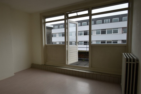 Geschikt voor een stel. Indeling De gemeenschappelijke hal/entree met bellentableau biedt toegang tot het trappenhuis. Gang met separaat toilet met fonteintje. Vanuit de gang is er toegang tot alle vertrekken en tot de vierde verdieping. Ruime, lichte woonkamer met toegang heeft tot het eerste balkon. De keuken is voorzien van een wasbak en heeft ook toegang tot het eerste balkon. Eerste ruime slaapkamer Twee slaapkamers met elk toegang tot een eigen balkon. De badkamer is ingericht met een bad, douche en wastafel. Wasruimte met wasmachine aansluiting.