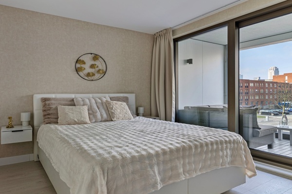 Het goed ontworpen appartement biedt een moderne woonervaring met hoogwaardige afwerking en veel natuurlijk licht. De woonkamer biedt een veelzijdige ruimte voor zowel ontspanning als vermaak. De moderne keuken is voorzien van inbouwapparatuur en biedt voldoende opbergruimte en een strakke kookomgeving. De slaapkamer is gevuld met natuurlijk licht en biedt een rustig toevluchtsoord. De stijlvolle badkamer is voorzien van eigentijdse voorzieningen en een modern design. Bovendien beschikt de woning over een eigen balkon, ideaal om te genieten van de frisse lucht en het uitzicht op de levendige buurt. Maximaal 2 huizen delen Geen studenten