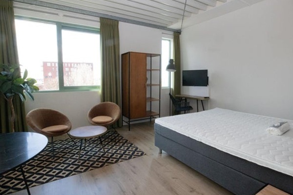 Let op: Deze studio is alleen beschikbaar voor expats die recent in Nederland zijn aangekomen. Indeling Entree van het gebouw met toegang via trap of lift naar de 4e verdieping. Entree in het: moderne open keuken, comfortabel tweepersoonsbed, kleine zithoek en een nieuwe badkamer met douche en toilet.