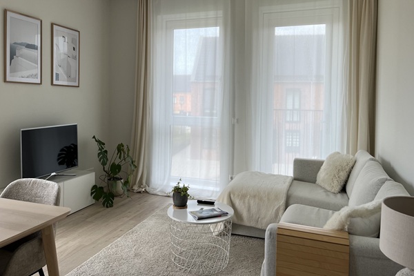INDELING -Bellentableau en brievenbussen; -Trapopgang en lift naar verdieping; -Bergingsgang met voor elk appartement een individuele berging met eigen stopcontact. -Entree; -Hal met voldoende ruimte voor garderobe; -Deels betegelde toiletruimte met toilet en fonteintje; -Woonkamer met toegang tot het balkon; -Nette keuken voorzien van diverse inbouwapparatuur waaronder koelkast met vriesvak, combimagnetron, inductiekookplaat, afzuigkap en vaatwasser; -Betegelde badkamer voorzien van inloopdouche, toilet en wastafel; -Slaapkamer 1; -Slaapkamer 2; -Inpandige berging met aansluiting wasapparatuur; Ook beschikt elk appartement over een eigen externe bergruimte.