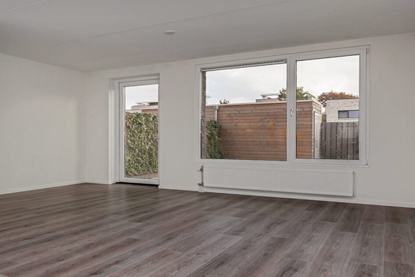 Indeling •Royale woonkamer met trapkast voor extra bergruimte •Volledig uitgeruste open keuken met moderne inbouwapparatuur: elektrische kookplaat, afzuigkap, koel-vriescombinatie, combi-magnetron en vaatwasser •Hal met toilet en meterkast •Toegang tot de tuin met houten schuur en achterom •Twee slaapkamers aan de achterzijde •Eén slaapkamer aan de voorzijde •Moderne badkamer met douche (glazen wand), wastafel met spiegel en een tweede toilet •Fijne achtertuin met mogelijkheid tot het aanleggen van een siertuin •Houten berging en achterom