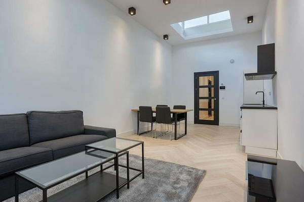 INDELING Begane grond Prachtige hoofdentree met glazen deur met postbussen en video intercom. Ook bevindt zich hier een privé berging. Entree, hal met directe doorloop naar de woonkamer met open keuken voorzien van stenen aanrechtblad en alle nodige inbouwapparatuur (koelkast, vriezer, oven, magnetron, vaatwasser, inductiekookplaat en afzuigkap). Vanuit de woonkamer zijn er openslaande deuren naar de royale achtertuin van 32 m2 gelegen op het noord oosten. Verder zijn er 2 slaapkamers, beide voorzien van een 2-persoonsbed. Badkamer voorzien van inloopdouche en vaste wastafel. Aparte toilet met wastafel. Aparte wasruimte met wasmachine en droger. Appartement is voorzien van Energielabel A. Volledig geïsoleerd en allen voorzien van vloerverwarming, heerlijk comfortabel. Verwarming en warm water door middel van blokverwarming.