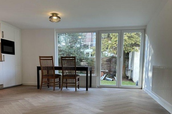 De woning bevindt zich aan de achterzijde van het pand met eigen entree. Binnenkomst in de hal die toegang geeft tot de lichte woonkamer met open keuken. De keuken is voorzien van inbouwapparatuur zoals koelkast, vriesvak, combi oven-magnetron, elektrische kookplaat en vaatwasser. Vanuit de woonkamer is toegang tot het terras met zeer ruime tuin. De moderne badkamer beschikt over een inloopdouche, wastafelmeubel, wasmachine en zwevend toilet. Vanuit de gang toegang tot de ruime slaapkamer. Geschikt voor 1 werkend person