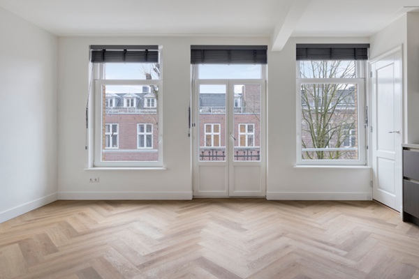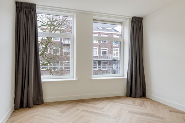 Aan de voorzijde bevindt zich de lichte woonkamer met een charmant Frans balkon. De moderne open keuken is volledig uitgerust met een inductiekookplaat, koel-vriescombinatie, Quooker, vaatwasser en afzuigkap—een fijne, open ruimte waar koken en ontspannen samenkomen. Aan de achterzijde liggen twee slaapkamers, waarvan één ruimer is en uitstekend geschikt als master bedroom, terwijl de andere wat compacter is en perfect kan dienen als werk- of logeerkamer. Centraal in het appartement bevindt zich de moderne badkamer, voorzien van een dubbele wastafel met meubel, douche en handdoekradiator. Het toilet en het washok zijn separaat, wat zorgt voor extra comfort en een praktische indeling. Op de vierde verdieping bevinden zich nog twee privébergingen die bij het appartement horen—ideaal voor opslag. Niet mogelijk voor studenten om te huren