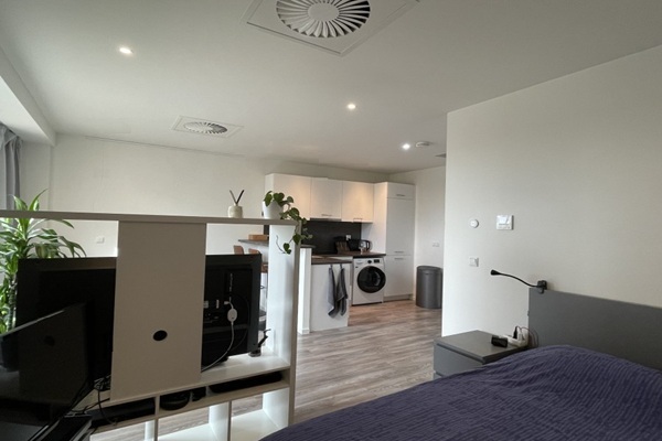 De prachtige entree van het complex Nederenck ligt aan de Zwarteweg. Bij binnenkomst zie je natuurlijk de traditionele postkasten maar ook de Bringme Box. Met de Bringme Box kun je je online bestelde pakje gewoon laten thuisbezorgen zonder dat je thuis bent! Woon je op één van de verdiepingen kies dan in de hal tussen de lift of gezond omhooglopen via de trap. De studio is volledig gestoffeerd. Er ligt al een PVC-vloer, de wanden zijn voorzien van scan behang, er zijn twee gordijnrails aangebracht waarvan één al is voorzien van in-between gordijnen en je hoeft geen lampen op te hangen want in de plafonds is al LED verlichting aangebracht. Er is zelfs gedacht aan schilderijrails zodat je niet zelf gaten hoeft te gaan boren! Als je binnenkomt heb je een hoekkeuken met afzuigkap, inductie kookplaat, combi-magnetron, koelkast en vriezer. Onder het aanrechtblad is ook een aansluiting en afvoer voor een wasmachine gemaakt. De badkamer is voorzien van een douche, wastafel, designradiator en een zwevend toilet. De studio is voorzien van een airconditioningssysteem waarmee je op energiezuinige wijze je woonruimte kunt verwarmen, koelen en ventileren. *De wordt verhuurd aan maximaal 1 persoon.