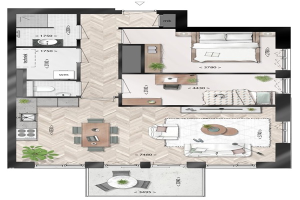 Indeling De keuken van dit appartement is uitgerust met moderne inbouwapparatuur, waaronder een inductie kookplaat, combi oven/magnetron, afzuigkap, vries/koelcombinatie en vaatwasmachine. De badkamer is voorzien van een wastafel met spiegel, een handdoekradiator, douchecabine en is betegeld tot aan het plafond. Daarnaast is er nog een apart, zwevend toilet aanwezig, wat extra comfort en gemak biedt. Dit type beschikt tevens over een inpandige berging van 3 m2 met aansluiting voor de wasmachine. Het appartement heeft 2 slaapkamers en een eigen privé buitenruimte met een oppervlakte van 7m2.