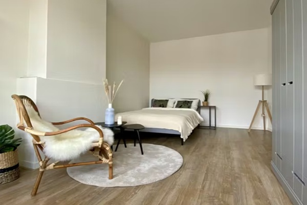 Kamer - Privékamer: ca. 16 m2 - Gelegen aan de voorzijde van een appartement op de eerste verdieping Volledig gemeubileerd met: - Tweepersoonsbed - Kledingkast - Eet-/werktafel