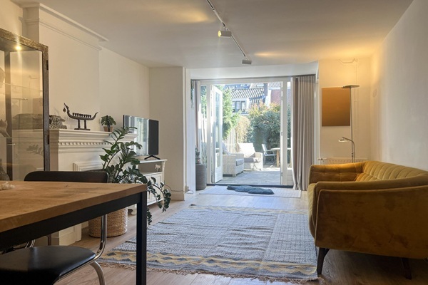 Indeling Souterrain: Via een trap naar beneden bereik je de woning met een eigen entree, wat zorgt voor een prettig gevoel van privacy. Bij binnenkomst kom je in een ruime hal die toegang biedt tot alle vertrekken van de woning. De hal vormt het centrale punt van het appartement en zorgt voor een praktische indeling. Aan de voorzijde van de woning bevindt zich de ruime en rustige slaapkamer. Deze kamer is voorzien van een bed en kastruimte en biedt een comfortabele plek om te ontspannen en tot rust te komen. De woonkamer is sfeervol ingericht en heeft een fijne indeling met voldoende ruimte voor een zit- en eetgedeelte. Dankzij de openslaande deuren naar de tuin komt er veel natuurlijk licht binnen en ontstaat er een prettige verbinding tussen binnen en buiten. De keuken is vanuit de woonkamer bereikbaar en is compleet uitgerust met diverse inbouwapparatuur, waaronder een koelkast met vriesvak, vaatwasser, inductiekookplaat, oven-magnetron en een afzuigkap. Hierdoor is de keuken volledig ingericht voor dagelijks gebruik en comfortabel koken. Aansluitend aan de keuken bevindt zich een afsluitbare kantoorruimte. Deze ruimte is ideaal voor thuiswerken, studeren of kan eventueel gebruikt worden als hobbyruimte. De zonnige tuin vormt een groot pluspunt van deze woning. Hier kun je in alle rust genieten van de buitenlucht, bijvoorbeeld in de ochtendzon of een gezellige avond buiten