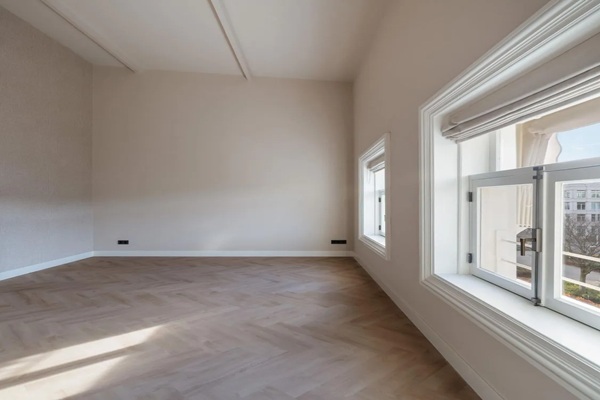 Indeling Via de ruime entree op straatniveau bereikt u de derde etage. De royale hal biedt toegang tot alle vertrekken en zet direct de toon: licht, lucht en elegantie. De imposante woon- en eetkamer strekt zich uit over de volledige lengte en biedt door de raampartijen een zee van daglicht. Aan de voorzijde openen dubbele deuren naar een ruime werk- of slaapkamer. Aan de achterzijde uitzicht op de groene binnentuinen - een heerlijke rustige plek om te ontspannen. De nieuwe luxe keuken is uitgerust met hoogwaardige inbouwapparatuur en vormt een perfecte combinatie van esthetiek en functionaliteit. Vanuit de hal zijn het separate gastentoilet en de opstelplaats voor wasmachine en droger bereikbaar. De master bedroom biedt directe toegang tot het ruime oostelijk gelegen terras – uw eigen oase midden in de stad. De tweede slaapkamer ligt eveneens aan de rustige achterzijde. Aangrenzend bevindt zich de luxe badkamer, voorzien van een dubbele wastafels en royale inloopdouche.
