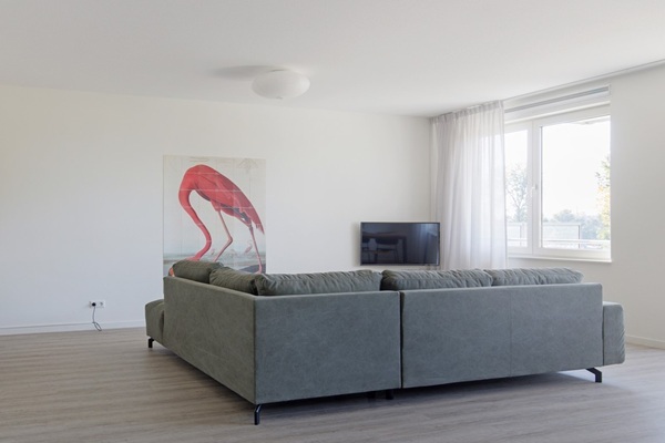 Hoogwaardig, volledig gemeubileerd appartement met twee slaapkamers van circa 100m2 met een balkon op het zuiden met uitzicht op het water. Het appartement is trendy met het nieuwste ontwerp en beschikt over luxe meubels en een complete inventaris van huishoudelijke apparatuur. Je voelt je meteen thuis. De ruime en brede woonkamer is het middelpunt van het appartement met een comfortabele grote bank, stoelen, dressoirkasten en een royale tv. Het appartement ademt vooral de ruimte in met zijn vrijstaande eethoek met 6 persoons eettafel, perfect als u thuis moet werken. De open keuken is voorzien van inbouwapparatuur waaronder een hoogwaardige vaatwasser, oven en koelkast met vriezer. Alle standaard huishoudtoestellen zijn inbegrepen zoals, waterkoker, etc. De hoofdslaapkamer is voorzien van een kingsize bed en royale kastruimte. De tweede slaapkamer heeft een tweepersoonsbed en een bureau. Het appartement wordt aangevuld met een luxe badkamer voorzien van een ligbad, inloopdouche en dubbele wastafels. Het appartement geeft u de luxe van een in huiselijke sfeer.