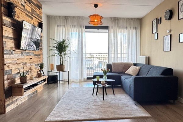 Indeling: ruime lichte hal met toilet, balkon voor en achter, ruime woonkamer, moderne half-open keuken met alle apparatuur, twee slaapkamers waarvan 1 materbedroom en een logeerkamer, BErging met wasmachine en droger, badkamer voorzien van douche en wastafelmeubel. Fietsenberging. Verder is er een exclusieve inpandige parkeerplaats te huur voor € 250,00 per maand. Woningdeling is niet toegestaan