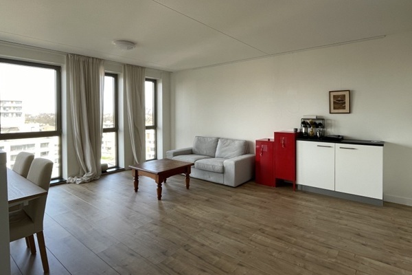 Het appartement beschikt over een ruime woonkamer met veel lichtinval en directe toegang tot het balkon, waar je heerlijk kunt genieten van de buitenlucht. De open inbouwkeuken is praktisch ingericht en voorzien van diverse apparatuur, waardoor koken hier een plezier wordt. Daarnaast is er één ruime slaapkamer, ideaal voor een alleenstaande of stel. De badkamer is netjes afgewerkt en het appartement heeft een prettige, efficiënte indeling.