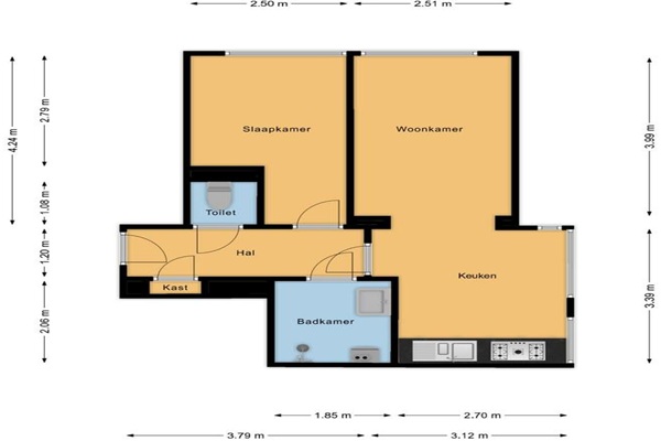 Indeling appartement: Je betreedt dit prachtige appartement via de entree die toegang biedt tot een separaat toilet en de badkamer is voorzien van douche, wastafel, vloerverwarming en wasmachineaansluiting. De entree biedt de doorgang naar de keuken en de woonkamer. Vanuit de keuken welke beschikt over diverse inbouwapparatuur waaronder een inductiekookplaat, combimagnetron, afzuigkap en koelkast met vriesvak, bereik je de woonkamer. De woonkamer is een mooie ruimte met veel lichtinval door de grote raampartijen. Dit appartement beschikt over een slaapkamer.