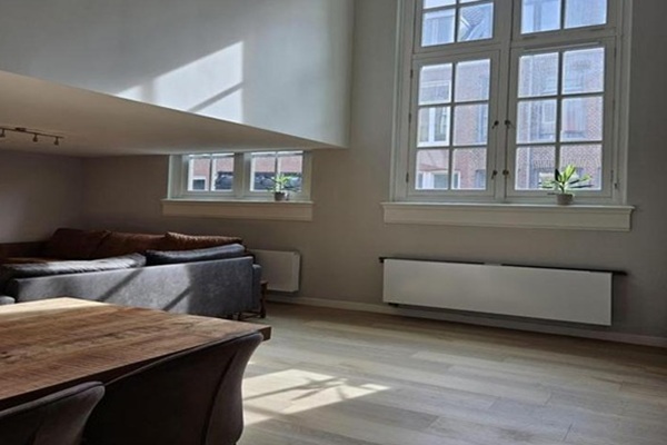 Indeling: Via de gemeenschappelijke hal komt u binnen in de hal van het appartement. De hal is voorzien van een glazen wand en geeft toegang tot het toilet die voorzien is van een zwevend toilet en een fonteintje. Vanuit de hal komt u binnen in de ruime woonkamer met open keuken. De woonkamer wordt gekenmerkt door het vele licht, de grote ruimte van maar liefst 50m2 en de hoogte van wel 5 meter hoog bij de vide. De keuken is voorzien van alle gemakken en zal luxe worden afgewerkt. De keuken is voorzien van Inductiekookplaat, vaatwasser, koel- en vrieskast en dubbele spoelbak. De keuken geeft tevens toegang tot een kleine berging waar de warmteboks is gesitueerd voor de stadsverwarming. Vanuit de woonkamer heeft u toegang tot een werkruimte die u tevens kan bereiken vanaf buiten. Ideaal voor eventueel een kantoor aan huis. In de woonkamer is een trap gesitueerd die u toegang geeft tot de 1e etage. Vanaf de overloop van de eerste etage kijkt u via de vide de woonkamer in. De overloop geeft u toegang tot 3 slaapkamers waarvan één voorzien van inbouwkast. Ook komt u via de overloop bij de luxe badkamer en het washok. De luxe badkamer is voorzien van een bad, dubbele douche, zwevend toilet en dubbele wastafel. Op het achtergelegen terrein zal er een fietsenhok worden geplaats en heeft u een gemeenschappelijke tuin van ruim 55m2. De tuin en het fietsenhok zal gedeeld worden met 8 andere appartementen. Woningdelen met 3 personen niet toegestaan. Zowel geschikt voor gezin als een stel