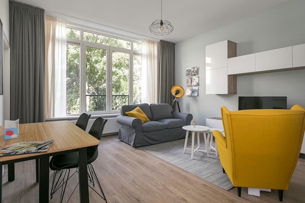 Dit appartement biedt toegang tot het gedeelde dakterras met een prachtig uitzicht op de skyline van Rotterdam. Elke unit in het gebouw heeft een eigen verwarming, zodat u deze naar eigen voorkeur kunt instellen. Verder zijn er benodigdheden zoals een stofzuiger, strijkplank en strijkijzer, evenals handdoeken en beddengoed aanwezig. De gemeenschappelijke ruimtes worden elke 2-3 weken schoongemaakt en onze huurders kunnen gebruikmaken van onze schoonmaakservice voor hun appartement. Het appartement is geschikt voor alleenstaanden of stellen.