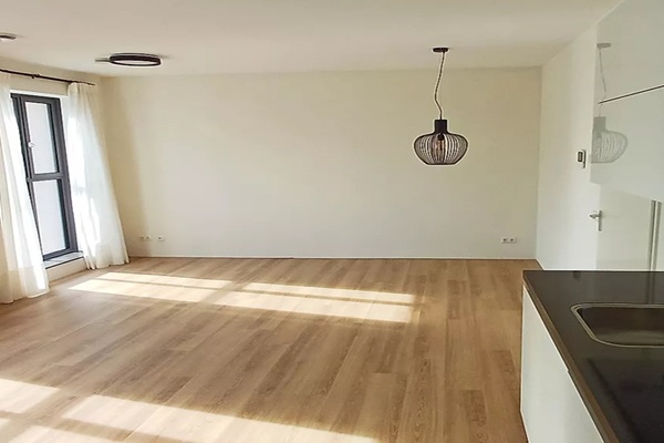 De lichte woonkamer biedt directe toegang tot een sfeervolle loggia, perfect voor een ontspannen of een borrel na het werk. De open keuken is volledig uitgerust met hoogwaardige inbouwapparatuur, waardoor koken hier een plezier wordt. De ruime slaapkamer biedt voldoende plek voor een groot bed en extra kastruimte. De badkamer is stijlvol afgewerkt en voorzien van een dubbele wastafel.