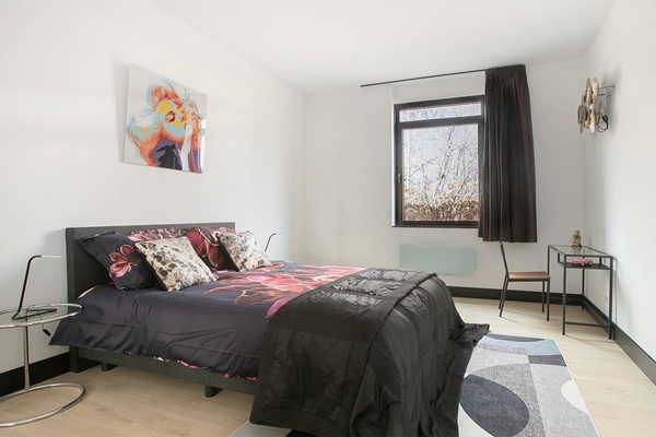Indeling Oprit, zelfstandige toegang, entreehal, toegang tot de slaapkamer, badkamer, toilet, wasruimte incl. inpandige berging en de ruime living met open keuken. De woonkamer is voorzien van grote ramen en deuren aan de tuinzijde welke veel licht inval geven en de buitenruimte verbindt met de living. In de woonkamer is een volledige zithoek incl. televisie en een ronde eettafel met 4 stoelen. De stijlvolle open keuken met koelkast en magnetron heeft een lang aanrechtblad en is voorzien van inbouw apparatuur zoals inductiekookplaat, vaatwasser en afzuigkap. De badkamer is afgewerkt met smaakvolle grootformaat tegels, regendouche, spiegel met ledverlichting, wastafel en meubel. Naast de badkamer bevindt zich het separate toilet, volledig in dezelfde stijl. Een derde ruimte naast de badkamer is de zeer ruime wasruimte met een wasmachine/droogcombinatie en extra bergruimte. De royale slaapkamer heeft een groot tweepersoonsbed, bureau en een garderobekast met spiegel. - Maximaal voor een huishouden van 2 personen