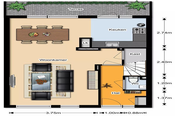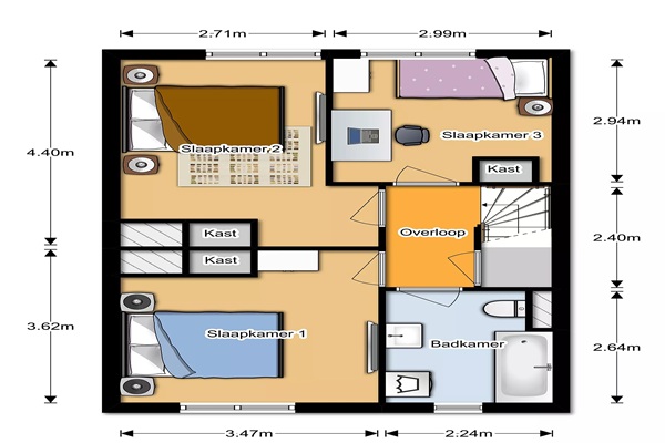 Via de voorzijde van de woning bereik je de entree. Hier vind je de toiletruimte met closet en fontein en de meterkast. De entree biedt toegang tot de trapopgang en de woonkamer. Deze eengezinswoningen zijn ruim opgezet en beschikken over een ruime woonkamer met halfopen keuken. Vanuit de keuken is toegang tot de achtertuin. Via de overloop bereik je slaapkamer één, twee en drie en de badkamer. De badkamer beschikt over een ligbad, douche, wastafel en toilet. De zolderverdieping is te bereiken via een vaste trap en hier vindt je de wasmachine aansluiting. Het is mogelijk om op deze verdieping een extra kamer creëren. Daarnaast beschikt de woning over een praktische garage.