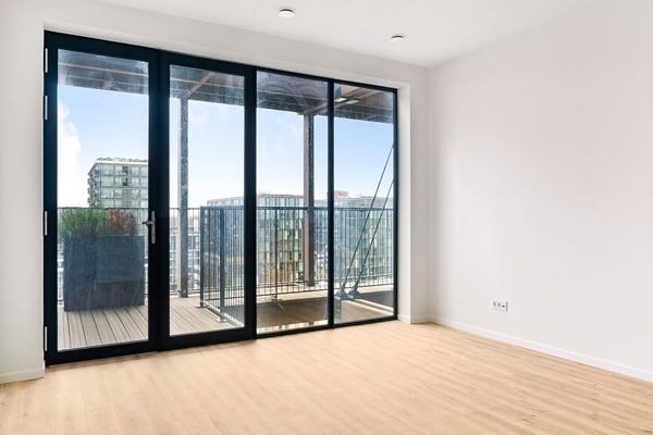 Het appartement is gelegen op een hogere verdieping en beschikt over een lichte woonkamer, twee comfortabele slaapkamers en een zonnige buitenruimte op het zuiden. De woning is stijlvol afgewerkt met een hoogwaardige PVC-vloer, vloerverwarming per ruimte, een moderne open keuken en een luxe badkamer. Bewoners profiteren daarnaast van diverse gezamenlijke voorzieningen zoals een groene daktuin, een gezamenlijke huiskamer, een overdekte fietsenstalling en de mogelijkheid tot het huren van een parkeerplaats in de ondergelegen parkeerkelder.