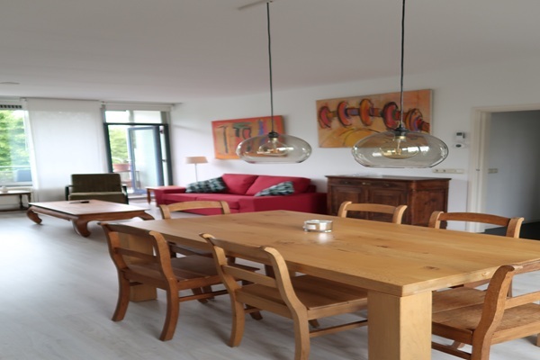 INDELING Begane grond: - Ruime privégarage (ca. 20 m2) - Privéberging (ca. 5 m2) - Aparte berging met eigen meterkast, gasaansluiting en watermeter. - Centrale entree met deurbellen (buiten), brievenbussen en trappenhuis Toegang tot het appartement via de trap op de 3e verdieping (eindportaal): - Ruime entree (ca. 10 m2) met intercomsysteem en toegang tot alle kamers. Het gehele appartement is netjes afgewerkt, met glad gestucte muren, gedeeltelijk betegelde vloeren en nette laminaatvloeren. Het appartement beschikt over 4 balkons, toegankelijk vanuit 2 slaapkamers, de woonkamer en de keuken. - Ruime woonkamer (ca. 35 m2) met veel lichtinval dankzij de vrije ligging ten opzichte van bomen en gebouwen. - Slaapkamer 1 (ca. 20 m2) met grote kledingkast en een tweepersoonsbed (160x200). - Slaapkamer 2 (ca. 11 m²) met grote kledingkast en een tweepersoonsbed (140 x 200 cm). - Slaapkamer 3 (ca. 7 m²) met tweepersoonsbed (140 x 200 cm). - Open, moderne keuken uit 2019 (ca. 8 m²) met veel opbergruimte dankzij de vele lades en kastjes, gaskookplaat, spoelbak, afzuigkap, ruime koelkast, vriezer met 3 lades, magnetron, oven, vaatwasser, wasmachine, sodastream, waterkoker, Nespresso-apparaat, filterkoffiezetapparaat, tosti-apparaat, broodrooster en blender. - De badkamer (ca. 5 m²) is betegeld en voorzien van een toilet, wastafel met spiegel, douche en droger. - Technische ruimte met onder andere een combiketel voor de centrale verwarming (bouwjaar 2019), stofzuiger, strijkplank, strijkijzer en andere opbergruimte. GEEN verhuur aan studenten