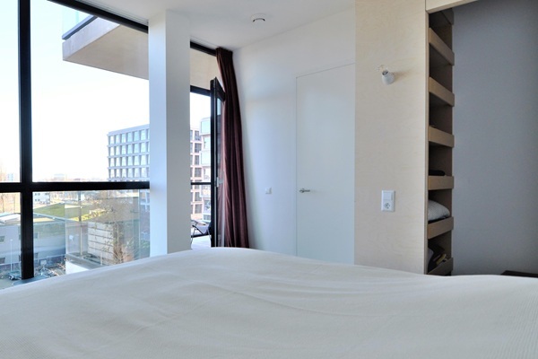 VOOR EEN SINGLE OF STEL (WERKEND) Indeling: -Doorzonwoonkamer met open keuken en alle inbouwapparatuur (incl Quooker) -1 slaapkamer -Badkamer met ligbad en douche -Twee royale balkons van circa 9m2 op het oosten en westen -Aparte wc en was-droogmachine -Gietvloer en vloerverwarming -Gemeenschappelijke fietsenberging aanwezig.