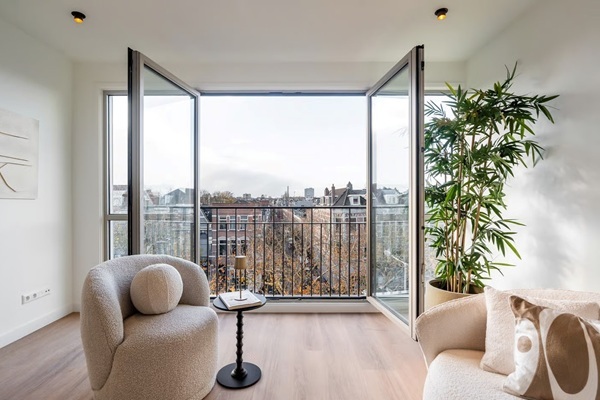 Indeling – stijlvol, licht en verrassend luxe Zodra je binnenkomt, valt het meteen op: licht, ruimte en een fijne flow. De grote raampartijen zorgen voor een open en frisse sfeer, terwijl de woon- en eetruimte naadloos in elkaar overlopen. Open de dubbele deuren naar het Franse balkon en laat binnen en buiten in elkaar overvloeien – perfect voor een ontspannen ochtend of een goed glas wijn met uitzicht. De moderne open keuken is uitgevoerd in warme houttinten en voorzien van hoogwaardige inbouwapparatuur, waaronder een inductiekookplaat met geïntegreerde afzuiging, een combi-oven én een Quooker voor direct kokend water. Hier kook je net zo makkelijk uitgebreid voor vrienden als dat je geniet van een snelle, efficiënte start van je dag. Met twee ruime slaapkamers biedt deze woning alle flexibiliteit: werken vanuit huis, logees ontvangen of gewoon extra ruimte voor jezelf. De master bedroom is een echte eyecatcher. Rust, ruimte en luxe komen hier samen, met als absoluut hoogtepunt het vrijstaande bad midden in de kamer. Een unieke, boutique achtige beleving – gewoon bij je thuis. De badkamer is modern en strak afgewerkt, voorzien van een inloopdouche en stijlvol wastafelmeubel. Daarnaast is er een separaat toilet en een praktische berg- en stookruimte, waar zich ook de opstelling voor de wasmachine en droger bevindt.