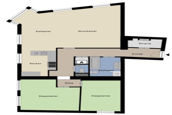 Entree gebouw: de entree beschikt over een beveiligde ontvangsthal met intercom. Centrale hal met open, licht trappenhuis. Het appartement zelf bevindt zich op de tweede verdieping. Eenmaal binnen vindt u een L-vormige hal met glazen paneeldeuren die leiden naar de ruime woon-/eetkamer en de moderne, volledig uitgeruste open keuken met een grote oven en een retrokoelkast/vriezer; toilet; veel opbergruimte. Beide slaapkamers bevinden zich aan de achterkant van het appartement. De hoofdslaapkamer is voorzien van een grote inbouwkast; tweede slaapkamer/studeerkamer. Badkamer met ligbad, extra grote wastafel + meubel, verlichte spiegel. Grote berging in de onderbouw.