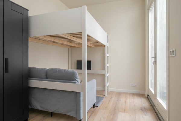 Indeling: Entree; begane grond naar de woonkamer met open keuken; Kamer aan de voorzijde (ca.15m2); gezamenlijke keuken in het midden, voorzien van keukenapparatuur zoals een oven/combimagnetron, inductiekookplaat met afzuigsysteem, inbouw koel- en vrieskast en alle benodigde keukengerei zoals borden, bestek, glazen en pannen; via de hal toegang tot de moderne badkamer met douche en wastafel; apart toilet ; washok met wasmachine en droger combinatie; Beschikbaar voor 1 persoon