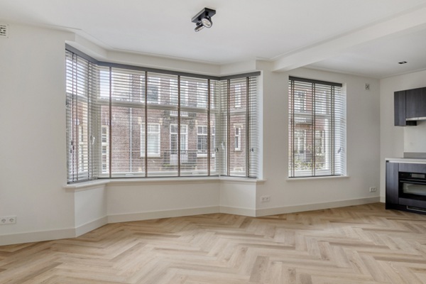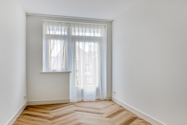 De grote ramen zorgen voor veel daglicht en maken het een prettige plek om te zitten. Aan de woonkamer grenst de open hoekkeuken. Die is volledig vernieuwd en voorzien van alle moderne apparatuur: een koel-vriescombinatie, inductiekookplaat, vaatwasser, combioven, Quooker en een wijnklimaatkast. Aan de achterzijde van het appartement liggen twee slaapkamers, van ongeveer 15 en 8 m². Beide kamers hebben toegang tot het balkon op het noordwesten — ideaal om na het werk nog even buiten te zitten. Centraal in het appartement ligt de badkamer, uitgerust met een regendouche, ligbad en een wastafel met meubel. Het toilet is apart, net als de ruimte voor de wasmachine. Het gehele appartement wordt opgeleverd met een hoogwaardige PVC vloer, raambekleding en verlichting. Maximaal twee werkende woningdelers toegestaan Garantstelling niet toegestaan Niet mogelijk voor studenten