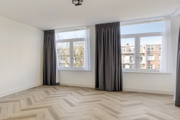 Aan de voorzijde van de woning ligt de lichte, sfeervolle woonkamer met een moderne open keuken. De keuken is volledig uitgerust met hoogwaardige apparatuur, waaronder een koel-vriescombinatie, wijnklimaatkast, inductiekookplaat, combi-oven, vaatwasser, afzuigkap en een Quooker, wat deze ruimte ideaal maakt voor kookliefhebbers. Aan de rustige achterzijde bevinden zich twee ruime slaapkamers van circa 17 m² en 10 m². Vanuit beide slaapkamers is het balkon (W) te bereiken. De moderne badkamer is voorzien van een regendouche en een dubbele wastafel met meubel. Daarnaast beschikt het appartement over een separaat toilet en een praktische wasruimte met plek voor wasmachine en droger. Het appartement wordt opgeleverd met een hoogwaardige PVC-vloer, passende raambekleding en verlichting. – Garantstelling niet toegestaan – Niet mogelijk voor studenten om te huren