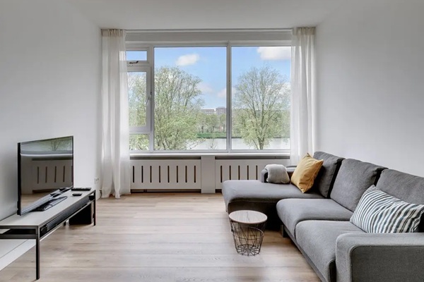 Begane grond: Entree met intercom, hal, brievenbussen, trapopgang en toegang tot de berging. Derde verdieping: Entree in de hal met meterkast, intercom en toilet met fontein. De woonkamer heeft grote ramen met mooi uitzicht op het kanaal. Aan de achterzijde kijk je uit op een perkje. Er zijn twee slaapkamers met beiden uitzicht op het kanaal. De grote slaapkamer is voorzien van een tweepersoonsbed en garderobekast. De tweede slaapkamer kan naar eigen inzicht worden ingedeeld. De keuken is voorzien van diverse inbouwapparatuur. De badkamer is voorzien van een inloopdouche, design radiator en een wastafel. Het gehele appartement is voorzien van een laminaatvloer en dubbele beglazing. In de onderbouw is ook nog een eigen berging. –Geschikt voor werkend stel/ alleenstaande; –Niet geschikt voor woningdelers