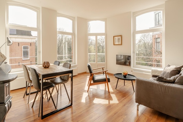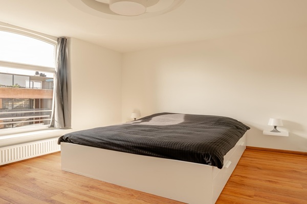 Indeling Via het gezamenlijke trappenhuis bereikt u de entree van de woning op de derde verdieping. Bij binnenkomst komt u in de hal, waar zich direct een separaat toilet en een praktische bergingsruimte bevinden. De woonkamer met open keuken vormt het hart van de woning en profiteert van veel natuurlijk licht dankzij de hoekligging. De originele schouw geeft de ruimte extra karakter. De open keuken is voorzien van een 4-pits gasfornuis, ingebouwde koelkast en oven, en biedt voldoende kastruimte. Tevens is er ruimte voor een eettafel, waardoor wonen, koken en eten op een prettige manier samenkomen. Het appartement beschikt over twee slaapkamers. De hoofdslaapkamer biedt voldoende ruimte voor een tweepersoonsbed. De tweede kamer wordt momenteel gebruikt als kastenkamer, maar is eveneens geschikt als slaapkamer. De badkamer is ruim opgezet en voorzien van een douche, wastafel met meubel en aansluitingen voor een wasmachine en droger. Maximaal 2 studenten toegestaan De woning is uitsluitend bestemd voor studenten