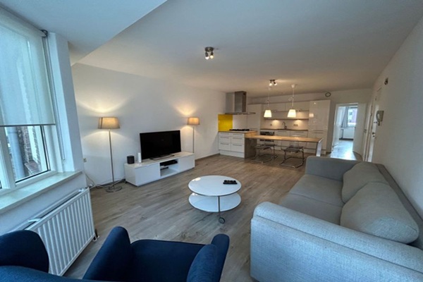 INDELING Begane grond Gezamenlijke fietsenberging ligt achter het complex. Het appartement beschikt over een privé parkeerplaats achter het gebouw en privé berging in de kelder. 2e etage Entree, ruime woonkamer van circa 25m2. Het gehele appartement is voorzien van een nette laminaat vloer. Luxe half-open keuken voorzien van alle benodigde apparatuur, zoals o.a. een vaatwasmachine, grote koelkast en aparte grote diepvries, combi magnetron oven en een ruim 5 pit gasfornuis. Vanuit de hal heeft u toegang tot het aparte toilet met fonteintje, badkamer en de 2 slaapkamers. De luxe en moderne badkamer is voorzien van een inloop douche met handdouche en wastafel. Het appartement beschikt over een wasmachine en droger. Slaapkamer 1: ongeveer 6m2 en ingericht met ruime kast. Slaapkamer 2: slaapkamer van circa 15m2 met 2 persoonsbed en een grote kast en toegang tot balkon aan de achterzijde van het appartement.