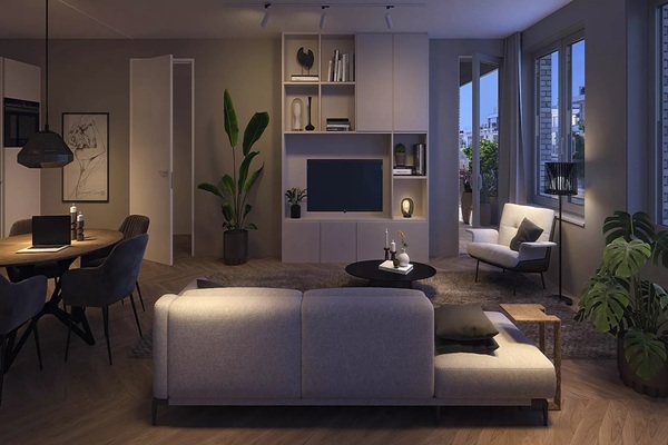 Dit moderne appartement biedt licht, comfort en een praktische indeling. De woonkamer met open keuken vormt het hart van de woning en biedt voldoende ruimte voor een gezellige zit- en eethoek. Vanuit de woonkamer stap je direct de loggia in, een fijne buitenruimte die het hele jaar door te gebruiken is. Het appartement beschikt over twee slaapkamers, waarvan één ideaal is als masterbedroom en de tweede uitstekend geschikt is als werk-, logeer- of hobbykamer. De badkamer is compact en functioneel ingericht en er is een separate toiletruimte aanwezig. Extra gemak komt van de interne berging met aansluiting voor de wasmachine. Een compleet en eigentijds appartement voor wie comfortabel en modern wil wonen in Amsterdam.