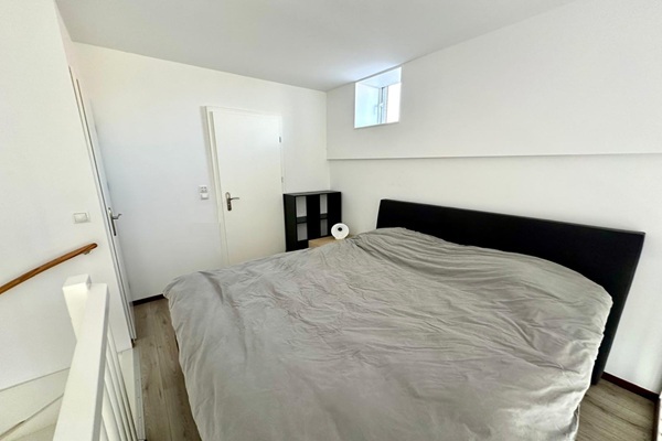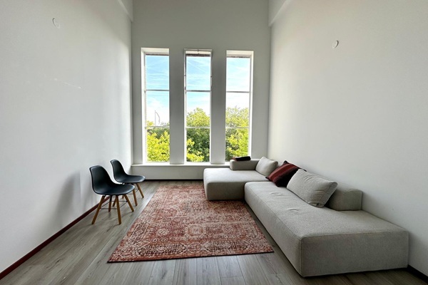 INDELING: Bij binnenkomst tref je direct de open keuken, uitgerust met moderne inbouwapparatuur zoals een inductiekookplaat, afzuigkap, koelkast met vriesvak, en een stijlvolle laminaatvloer die door het gehele appartement ligt. De keuken loopt naadloos over in de lichte woonkamer, die dankzij de grote raampartijen een overvloed aan daglicht binnenlaat. Vanuit de woonkamer leidt een trap naar de sfeervolle slaapvliering, waar je tevens toegang hebt tot de badkamer. De badkamer is compleet met een douche, wastafel, toilet en een handige handdoekradiator.
