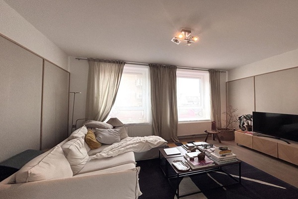 Indeling: Begane grond: Het appartement is bereikbaar via een gezamenlijke hal of via de achtertuin. Bij binnenkomst komt u in de ruime woonkamer, die is voorzien van een mooie houten vloer. Vanuit de woonkamer is tevens de trap naar de eerste verdieping bereikbaar. Aansluitend aan de woonkamer bevindt zich de strak afgewerkte open keuken. De keuken is uitgerust met diverse inbouwapparatuur, waaronder een koelkast, combimagnetron, vaatwasser en een 4-pits inductiekookplaat met afzuigkap. Daarnaast beschikt het appartement over een ruime bijkeuken/wasruimte. In deze ruimte bevinden zich de aansluitingen voor de wasmachine en een separaat toilet. Via zowel de keuken als de bijkeuken heeft u directe toegang tot de ruime tuin met terras. Eerste verdieping: Op de eerste verdieping bevinden zich de badkamer en twee slaapkamers van respectievelijk ca. 20 m² en 7 m². De ruime hoofdslaapkamer aan de voorzijde van de woning biedt veel lichtinval en voldoende ruimte voor een groot bed en kasten. Beide slaapkamers zijn afgewerkt met dezelfde mooie houten vloer als in de woonkamer, wat zorgt voor een warme en uniforme uitstraling in het appartement. De moderne badkamer is strak afgewerkt en voorzien van een ligbad, aparte douche en wastafel. - Geschikt voor (expat) koppels.
