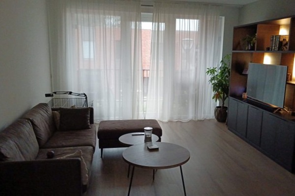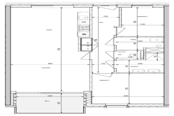 INDELING Algemeen: -Bellentableau met brievenbussen; -Trapopgang en lift naar verdiepingen; -Entree; -Hal met voldoende ruimte voor garderobe; -Deels betegelde toiletruimte met toilet en fonteintje; -Woonkamer met toegang tot het balkon; -Nette keuken voorzien van diverse inbouwapparatuur waaronder koel-/vriescombinatie, combimagnetron, inductiekookplaat, afzuigkap en vaatwasser; -Deels betegelde badkamer voorzien van inloopdouche, toilet en wastafel; -Slaapkamer 1; -Slaapkamer 2; -Inpandige berging met aansluiting wasapparatuur; -Balkon