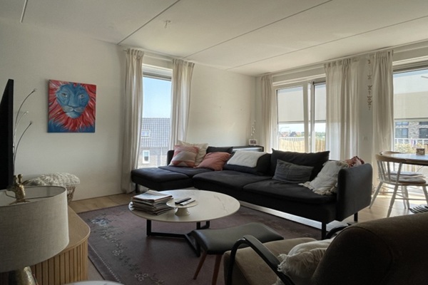 Je komt binnen in de hal met apart toilet van Villeroy & Boch. Via de hal kom je in de badkamer, twee slaapkamers van ca. 15m2 en 8m2 en de ruime, lichte woonkamer. De grote woonkamer heeft een moderne open keuken voorzien van inductiekookplaat, wandafzuigkap, combimagnetron, koelkast met vriesvak en vaatwasser. Vanuit de woonkamer heb je toegang tot een groot balkon. In de badkamer is een Grohe regendouche en wastafel met Villeroy & Boch onderkast aanwezig. De badkamer is tot aan het plafond betegeld en geeft je een gevoel van luxe. Ieder appartement heeft een eigen berging achter op het terrein. In de berging is verlichting en elektra aanwezig, handig voor bijvoorbeeld het opladen van een elektrische fiets.