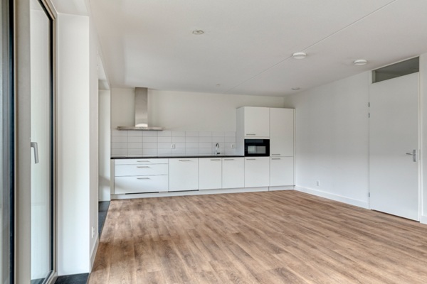 Het appartement heeft een oppervlakte van circa 53 m2. Vanuit de hal zijn alle vertrekken van de woning te bereiken. De woonkamer met open keuken heft een oppervlakte van circa 25.2 m2 en is voorzien van alle benodigde inbouwapparatuur zoals een kookplaat, combi oven/magnetron, afzuigkap, koelkast, vriezer en een vaatwasser. Vanuit de woonkamer is toegang naar het balkon van circa 5 m2. De slaapkamer heeft een oppervlakte van circa 11.3 m2. De badkamer is uitgerust met een inloopdouche, wastafel en handdoekradiator. Daarnaast beschikt het appartement over een inpandige berging met wasmachine aansluiting en een separaat toilet. Het appartement wordt opgeleverd met PVC vloer en witte wandafwerking. Niet mogelijk voor studenten om te huren