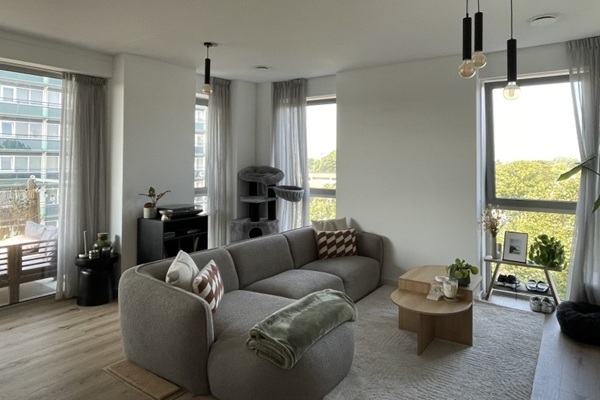 Dit riante 3-kamer appartement bevindt zich op de 2e etage. De L-vormige witte keuken is voorzien van koel/vriescombinatie, oven met magnetronfunctie, inductie kookplaat en een vaatwasser. De moderne en comfortabele badkamer is voorzien van een inloopdouche en een dubbele wastafel met spiegel. Het zwevende toilet met fontein bevindt zich in een aparte ruimte. Het appartement heeft 2 slaapkamers en een groot balkon die via de riante woonkamer te betreden is.