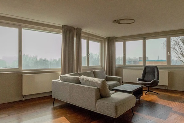 ALLEEN STUDENTEN *Indeling* Het appartement is gelegen op de vijfde verdieping van het gebouw en is bereikbaar via de lift of de trap. De entree biedt toegang tot alle vertrekken, inclusief het aparte toilet. De woonkamer kijkt uit over de sportvelden richting de krijtmolen, waardoor er de hele dag prachtig natuurlijk licht en een prachtig uitzicht is. De woonkamer is sfeervol ingericht en volledig gemeubileerd. Samen met de open keuken vormt het een prachtig geheel. Ook de keuken is van alle gemakken voorzien, waaronder een ruime koelkast en vriezer, een vaatwasser, een gasfornuis, een Quooker kraan, een combi oven/magnetron en uiteraard voldoende opbergruimte. De hoofdslaapkamer is comfortabel ingericht met diverse kasten en voldoende opbergruimte. Deze grenst aan de badkamer waar zich de wasmachine, droger, wastafel en douche bevinden met zowel hand- als regendouchekop. Tenslotte is er nog een tweede slaapkamer, momenteel in gebruik als kantoor. Mogelijk voor 2 studenten Alleen studenten die niet in Amsterdam staan ingeschreven kunnen worden geaccepteerd