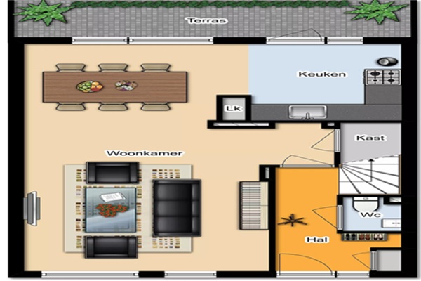 Entree & Hal Via de voorzijde van de woning bereik je de entree. Hier bevinden zich de toiletruimte met closet en fontein en de meterkast. Vanuit de hal heb je toegang tot de trapopgang en de woonkamer. Woonkamer & Keuken De ruime woonkamer biedt een fijne leefruimte en staat in verbinding met de halfopen keuken. Vanuit de keuken heb je toegang tot de achtertuin, waardoor binnen en buiten prettig in elkaar overlopen. Slaapverdieping Via de overloop bereik je drie slaapkamers. De kamers zijn geschikt als masterbedroom, kinderkamer of werkruimte. De badkamer is uitgerust met een ligbad, douche, wastafel en toilet. Zolderverdieping De zolder is bereikbaar via een vaste trap. Hier bevindt zich de aansluiting voor de wasmachine. De ruimte biedt bovendien de mogelijkheid om een extra kamer te creëren, bijvoorbeeld als hobbyruimte of vierde slaapkamer.